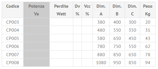 Dv: caduta di tensione da vuoto a pieno carico – Vcc: Tensione di corto circuito.
