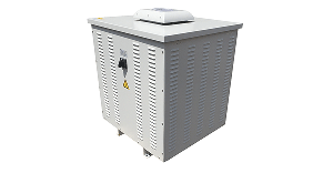 Cassette di protezione in lamiera da 2,5mm di spessore verniciate a polvere, alettate per il raffreddamento naturale del trasformatore, colore RAL 7035, Grado di protezione IP23.